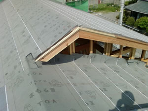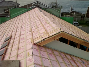 | このお客様は、断熱性能が高く、燃えない素材の旭化成建材(株)『ネオマフォーム』を使用していただきました。 | 弊社は断熱材を屋根面及び天井裏に施工をすることお奨めしております。 『快適な移住空間と省エネ』 |
