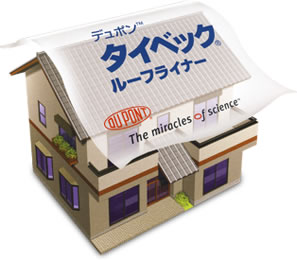 | 透湿性・耐久性・防水性に優れるデュポン™タイベック®をベースにした透湿ルーフィング材です。屋根の長寿命化、居住空間の快適化を実現するほか、滑り止め加工を付与し、作業の安全にも貢献します。 | 透湿性に優れたデュポン™タイベック®を基材としているため、野地板の湿気を素早く屋外に透過・放出し、野地板の腐敗・変形を防ぎます。また、熱に対する優れた耐久性能も確認されています。 |